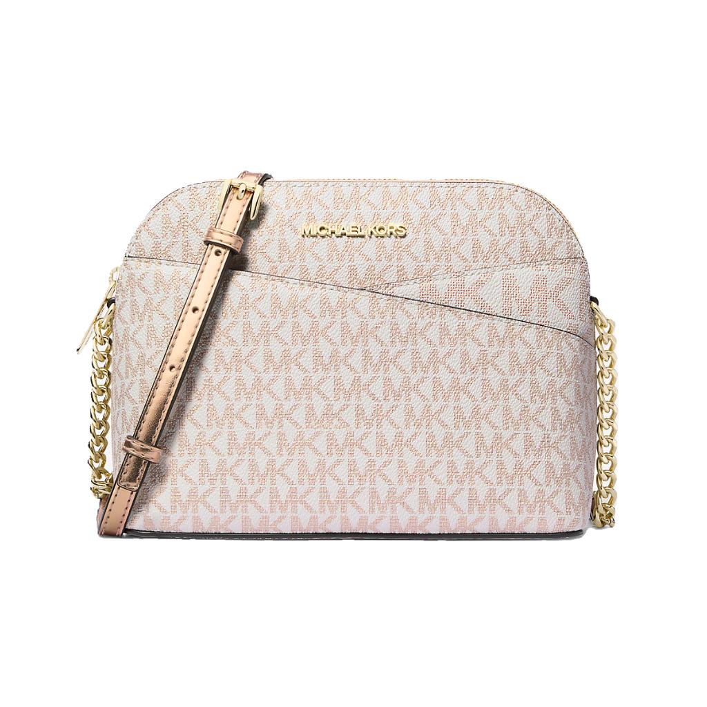 Michael Kors Jet Set Travel Medium Metallic Signature Logo Dome Crossbody Bag